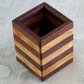 | Rasia on valmistettu tummasta ja vaaleasta lämpökäsitellystä koivusta. Hinta 20 €. |